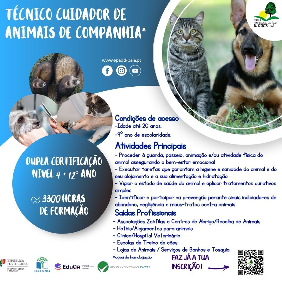 Curso Profissional de Técnico Cuidador de Animais de Companhia